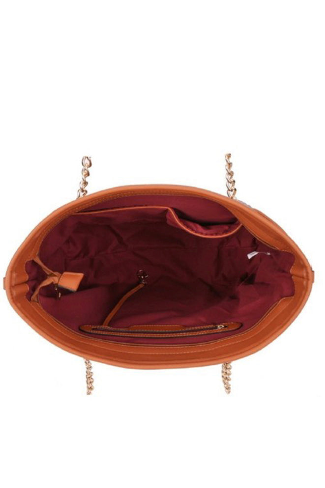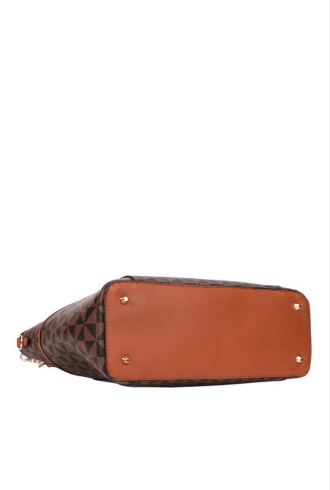 Monogram Print 2-Way Chain Shopper Tote Wallet Set